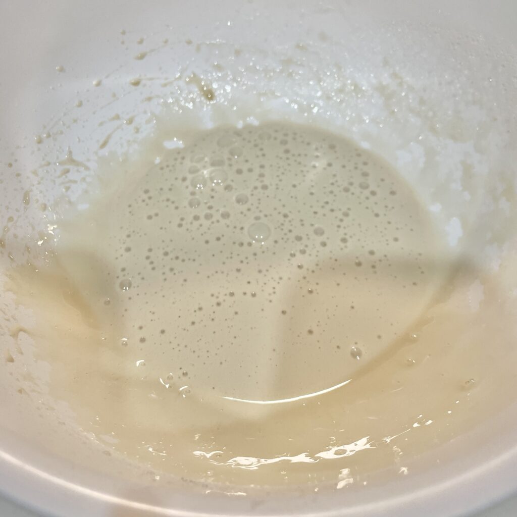ツノが立つまで混ぜなくても、小さい型で作るので、ある程度で大丈夫👌