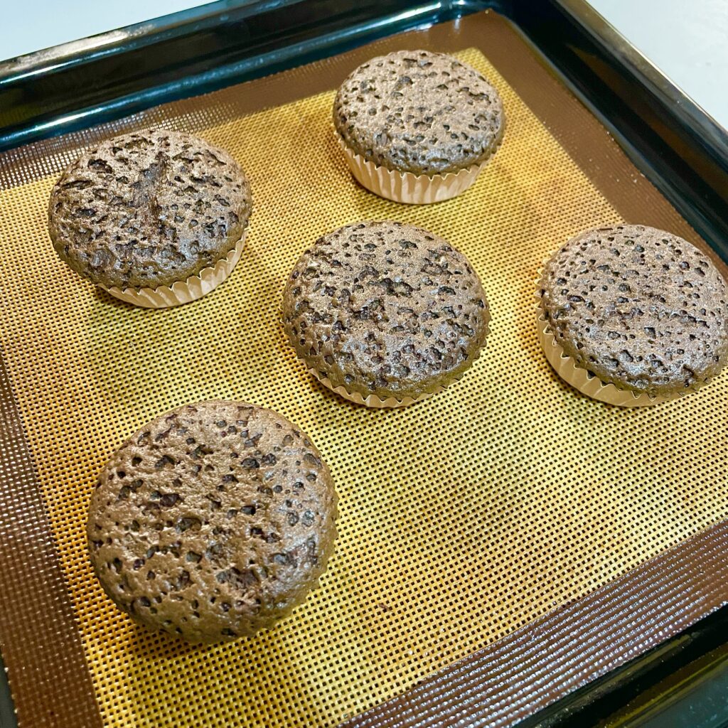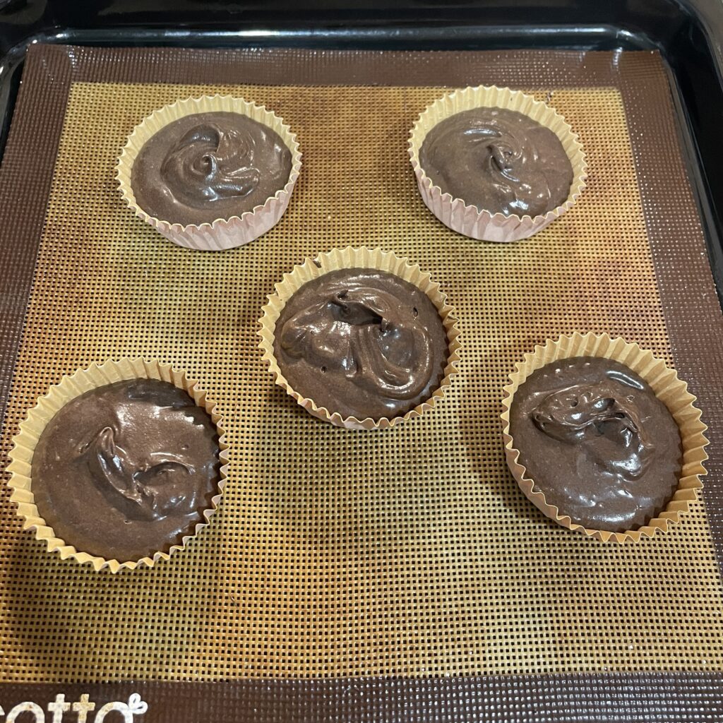⑦マフィンカップに流し込んで、160℃に予熱したオーブンで20分焼く。