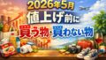 日用品全体で「何を先に買うべきか」「買いすぎないほうがいい物は何か」を整理したい方は、 2026年値上げカレンダー|月別一覧と家計影響まとめ【随時更新】 も参考にしてみてください。