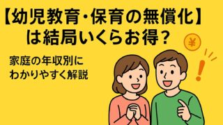 🧾 お金×制度を知る 【幼児教育・保育の無償化】は結局いくらお得? 幼児教育・保育の無償化で“うちの家庭はいくら得する?”を年収別にわかりやすく解説。保育園・幼稚園・こども園の違いや注意点もまとめたパパママ向けの2025年版ガイドです。 2025.11.24 🧾 お金×制度を知る