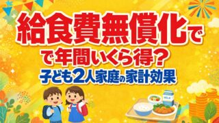 🧾 お金×制度を知る 給食費無償化で年間いくら得?子ども2人家庭の家計効果 給食費無償化で本当に家計は楽になる?子ども2人家庭の場合の年間メリットをわかりやすく計算。実はかかる費用や、浮いたお金の使い道までリアルに解説します。 2026.02.23 🧾 お金×制度を知る